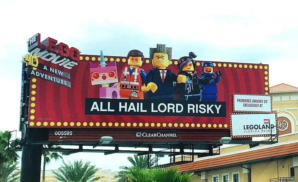 The LEGO Movie 4D: A New Adventure premiered at Legoland Florida, introducing a new villain: Lord Business’ brother Risky Business (and his evil secret plot). So I gave him another evil idea: hypnotize the world into watching his big debut on the big screen. All hail Lord Risky.